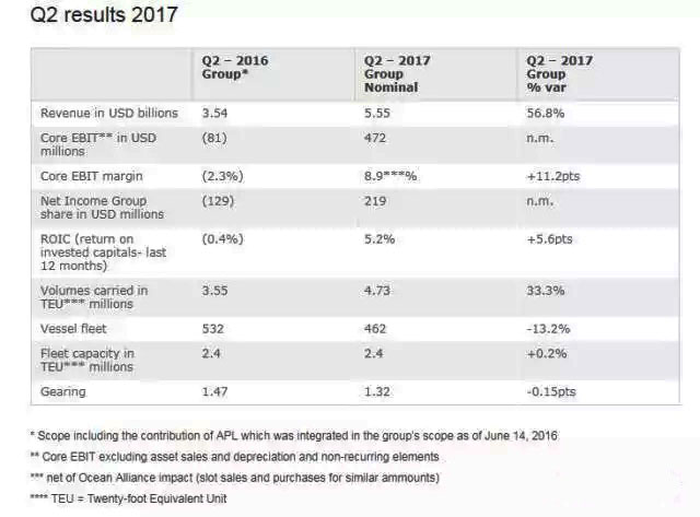 第二季度,由于收购APL带来的协同效应、海洋联盟的推出以及行业出现复苏态势,达飞的运量同比增长了33.3%。